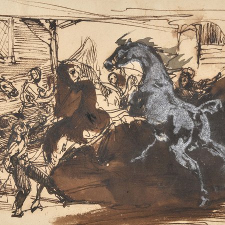 2e quart du XIXe siècle Crayon et huile sur papier marouflé sur toile 44 x 583,5 cm