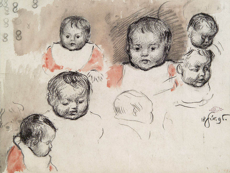 Notre étude de têtes d’enfants au fusain, oeuvre atypique dans la production de Lemmen rappelle les études de têtes d’enfants de Berthe Morisot.