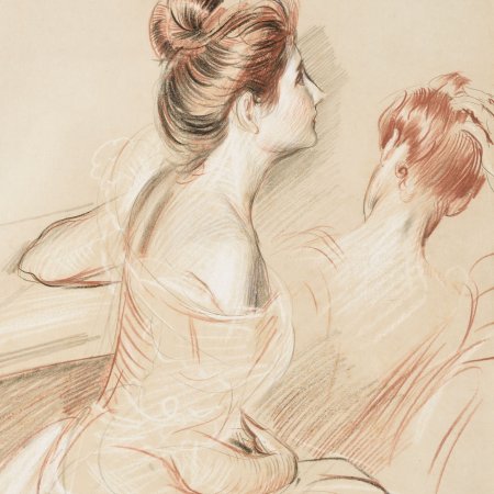 Malgré les réticences de sa mère, le jeune Paul-César Helleu se tourne vers une carrière artistique. En arrivant à Paris en 1873, le jeune artiste prend des cours de dessins de manière extrascolaire et se rend fréquemment au Louvre le dimanche où il rencontre Jean-Léon Gérôme (1824-1904) et rejoint son atelier aux Beaux-Arts en 1876.