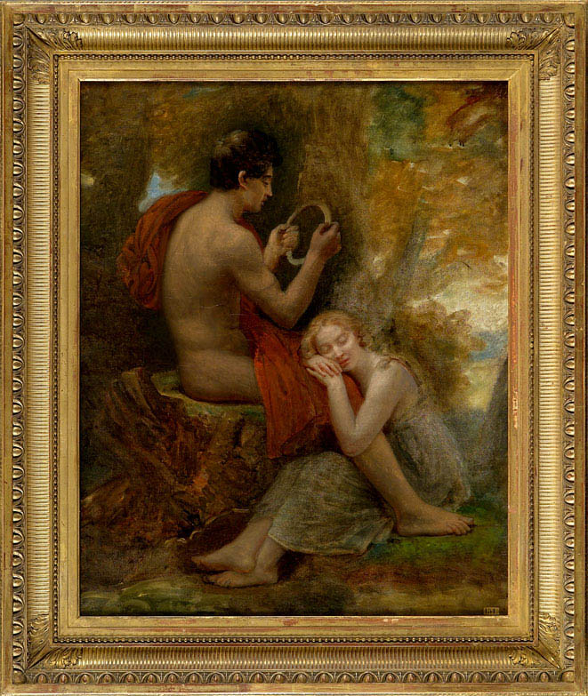 Ce tableau, qui représente Daphnis couronnant Chloé endormie entourés d’arbres aux feuilles dorées, est l’esquisse préparatoire pour le tableau du Louvre exposé au Salon de 1825 et acquis la même année par Charles X pour la somme de 25 000 francs.