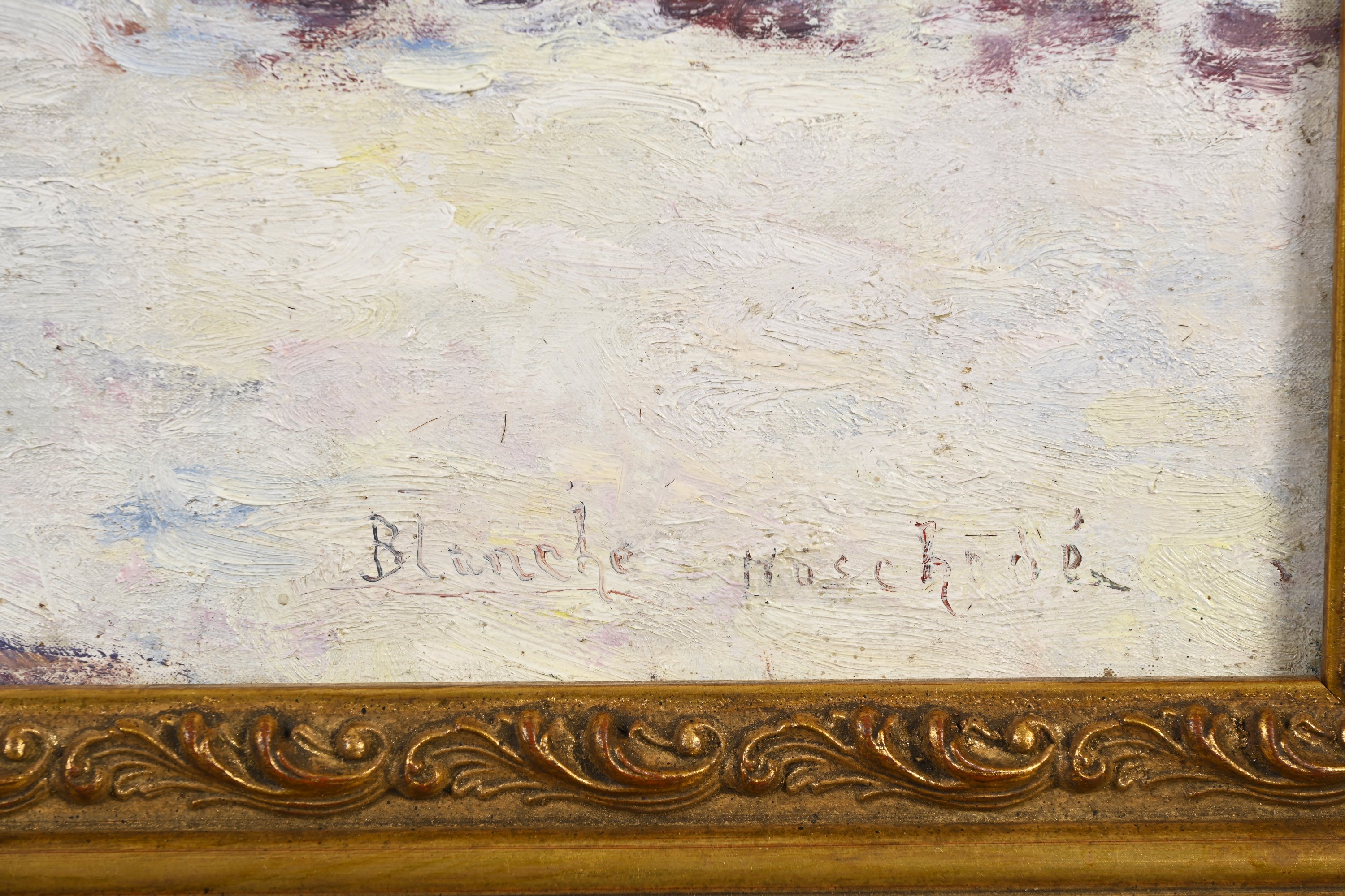 C’est avec modestie que Blanche Hoschedé mena sa carrière d’artiste, signant de son nom de jeune fille sans jamais y ajouter le nom de Monet. Pourtant, civilement elle porte le nom de Hoschedé-Monet. Sa mère Alice Hoschedé épouse Claude Monet en secondes noces en 1892. 5 ans plus tard, Blanche épouse Jean Monet, l’un des deux fils de Claude Monet et de Camille Doncieux. Elle devient ainsi la belle-fille du peintre, à double titre.
