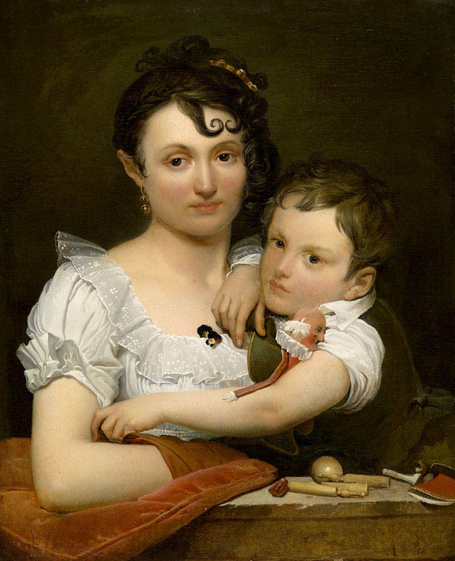 Notre tableau est très proche du « Portrait d’une mère et sa fille portant un portrait médaillon », daté entre 1816 et 1823 et vendu chez Sotheby’s en décembre 2006. Même type de portrait en buste, même thème, celui d’une mère et son enfant, et même pose des personnages.