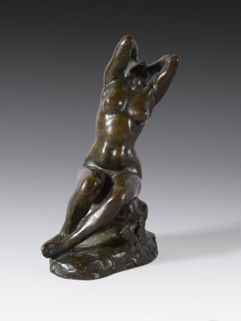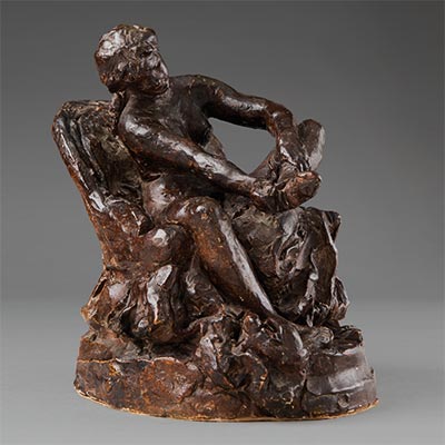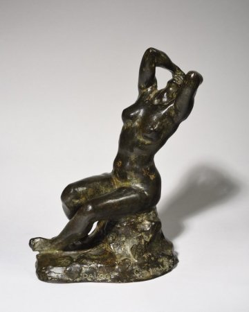 A côté de l’image de la jeune mère, très appréciée de ses commanditaires anglais, la femme nue qui prend parfois les traits d’une nymphe est l’un des sujets de prédilection de Dalou. Il le développa surtout dans les dernières années de sa vie, au travers de nombreuses petites études vigoureuses en ronde-bosse à la terre cuite ou en plâtre qu’il n’exposa ni n’édita de son vivant. Semblant les avoir menées pour son seul plaisir, Dalou les conserva dans son atelier, puisant parfois dans ce charmant répertoire de formes pour l’élaboration de ses monuments.