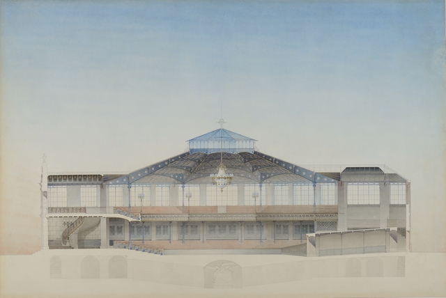 Cross-section of a building intended for the Champs-Elysées area, Paris