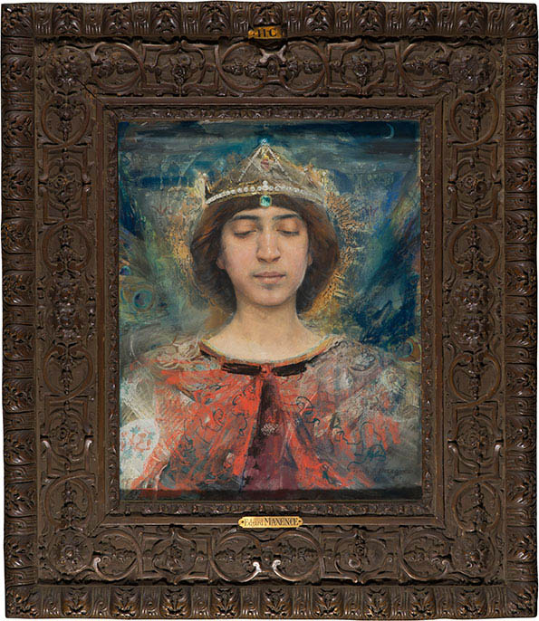 His first exhibition at the Salon of French Artists in 1894 met with success. The next year, however, he was eliminated in the first round of the Prix de Rome competition. This defeat had interesting consequences on the artist’s work: the dreamy world which Maxence created became impregnated with his literary knowledge and fantasies of Italy where he would not actually set foot until 1920. Initially influenced by Gustave Moreau, Maxence depicted a mysterious universe imbued with a very personal iconography. He demonstrated his taste for the Middle Ages blended with religious sensitivity, along with a preference for portraits indebted to the work of his first master.