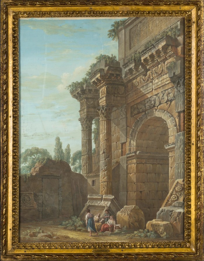 Figure énigmatique de la peinture de ruines à l’aube du néoclassicisme, Charles-Louis Clérisseau conjugue ses dons de dessinateur au domaine de l’architecture dans lequel il se place comme l’un des plus renommés de sa génération. La paternité de ses œuvres a pu être confondue avec ses éminents contemporains italiens et français tels que Giovanni Paolo Panini (1691-1765) et Hubert Robert (1733-1808).