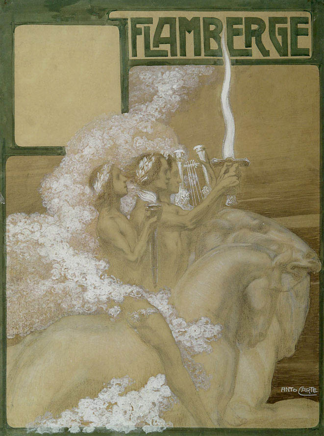 Ce dessin est un bel exemple du génie formel d’Anto Carte. On reprocha à l’artiste son talent de « décorateur » ou sa qualité d’ « imagier ». C’est en effet la ligne, fluide et ferme, qui construit la composition avec un sens aigu de la mise en page. Le métier est précis, le trait élégant circonscrit les silhouettes que la couleur souligne. Plus sobre que dans ses premières affiches, dégagées de l’accumulation des symboles, l’œuvre gagne en puissance. On y retrouve la simplicité des primitifs italiens – l’intériorité d’un Fra Angelico, où le monumental d’un Mantegna. Les chevaux évoquent les batailles d’Ucello, qu’Anto Carte découvrit lors d’un voyage à Florence en 1925. Un même motif de chevaux – alors ailés – orne le projet de l’avers d’un billet de 1000 francs qu’il dessina en 1925.