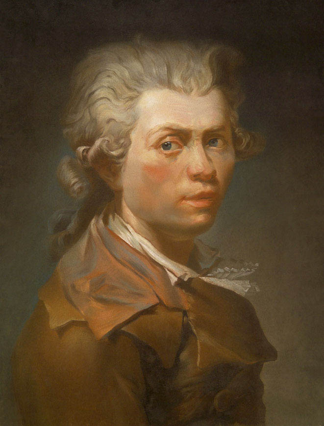Portant un catogan d’influence Louis XVI, Berjon se représente ici en redingote et sans perruque, les cheveux au naturel. Cette mode vestimentaire révolutionnaire situe notre œuvre dans les années 1790. L’artiste utilise le pastel, médium difficile à maîtriser dont il tire habilement parti. Le velouté de la matière, la finesse du grain, attestent de la qualité technique de l’œuvre.