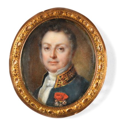 Aquarelle et gomme arabique sur trait de crayon sur ivoire (ovale) 7,5 x 6 cm