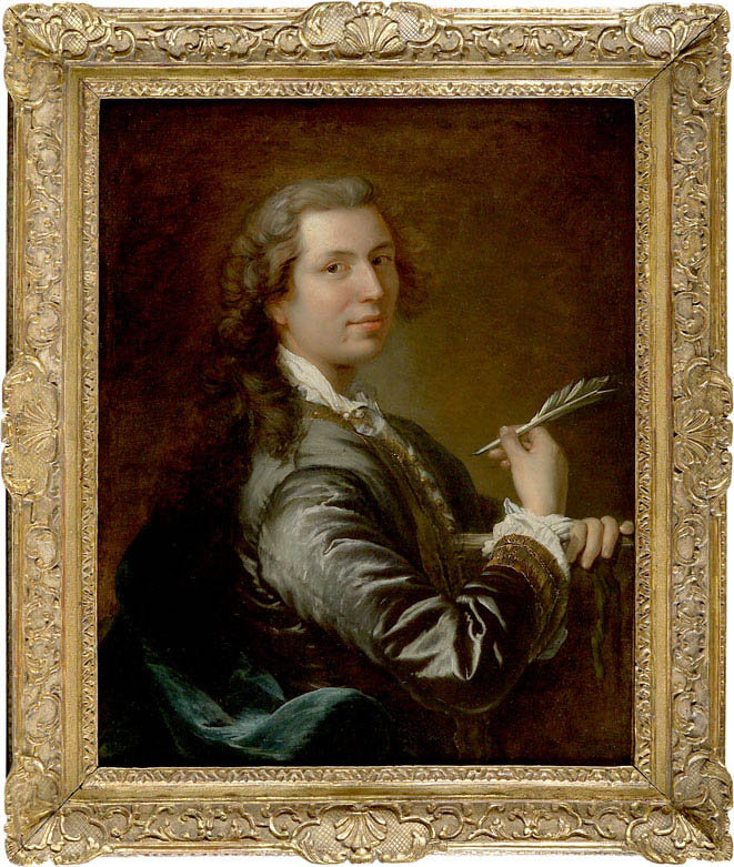 Notre tableau représente un artiste, reconnaissable à la plume ainsi qu’au portefeuille que le modèle tient dans ses mains. La psychologie du modèle est renforcée par le modelé des chairs du visage et les fonds ambrés confèrent à cet artiste un côté intemporel.