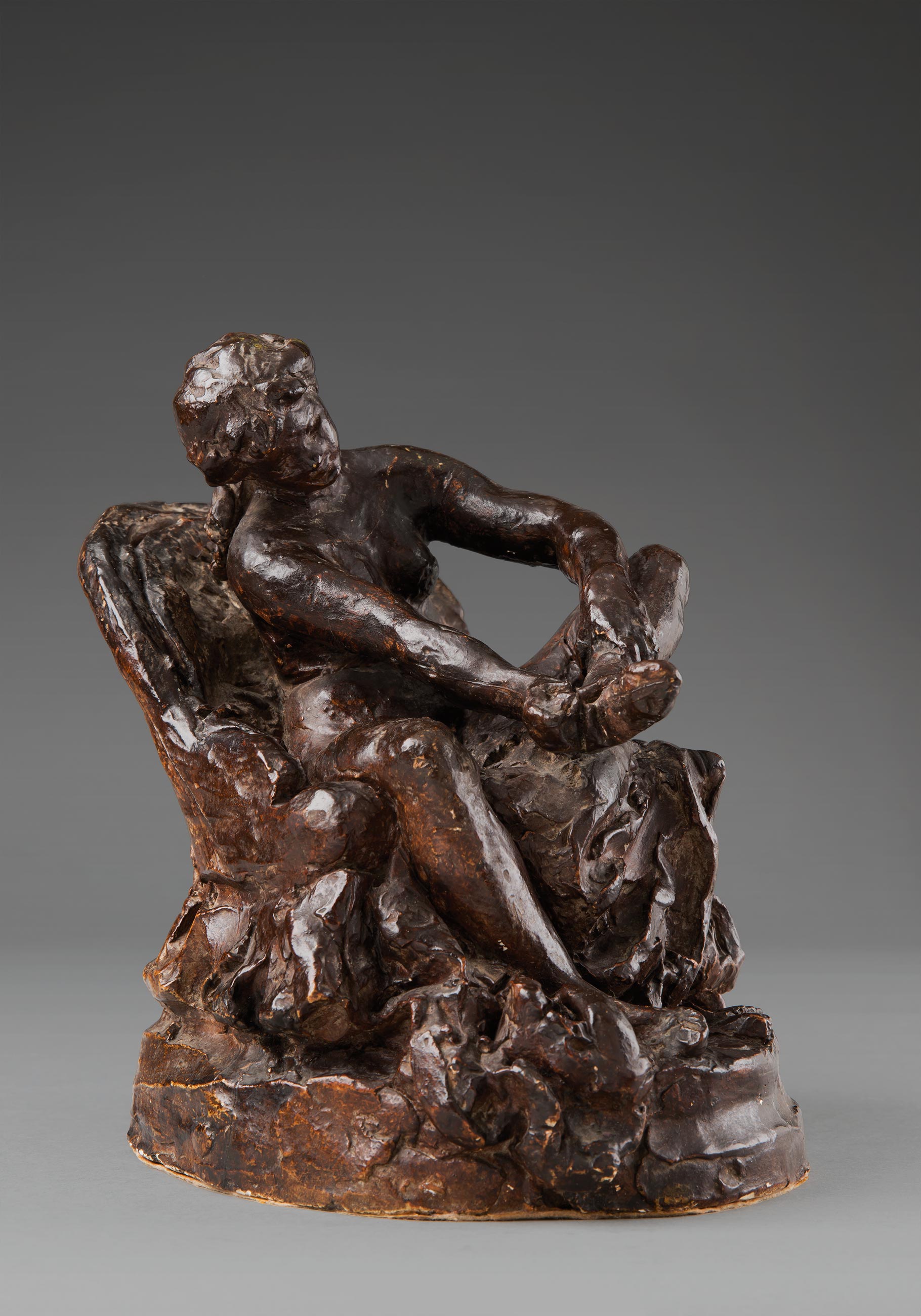 La femme nue est en effet l’un des sujets de prédilection de Dalou, et les baigneuses constituent l’un des principaux sous-ensembles de son œuvre. Par leur statut d’études, immédiates et vibrantes, ces petites ronde-bosse ne quittèrent pas l’atelier du sculpteur. Jamais exposées ni éditées de son vivant, elles semblent avoir été menées pour le seul plaisir de l’artiste, vaste et charmant répertoire de formes jalousement conservé.