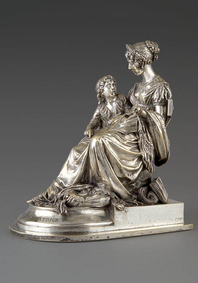 Groupe en bronze argenté. Signé Chatrousse et dédié à S.M. l’Impératrice sur la terrasse.