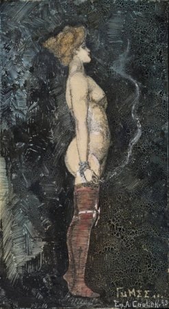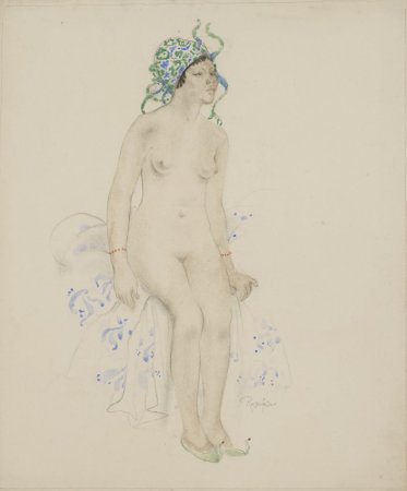 Félicien Rops, Le Maillot, fusain, aquarelle, crayon, sanguine sur papier, 21 x 15 cm, Allemagne, collection particulière.