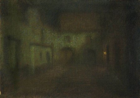 Sourd à toute exigence académique, Degouve fait de son œuvre le réceptacle de ses doutes et de ses émotions : une peinture mystérieuse et inquiétante transcendée par de merveilleux effets de lumière. En effet, dans notre œuvre le délicat travail mené sur l’éclairage tamisé par les arbres rend une vibration des formes et des matières propres à l’artiste qui utilise une préparation particulière, mixant ses pigments à une matière cireuse, permettant de retranscrire ici la véracité des éléments, comme l’aspect embrumé et vaporeux de la nature.