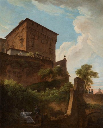 Granet se représente ici en tant qu’artiste, palette à la main, comme pour l’Autoportrait du Musée National des Châteaux de Versailles et Trianon.