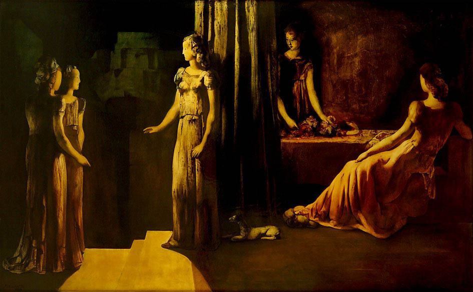 Laque sur panneau. Signé M.Delmotte et daté 1943 en bas à gauche.